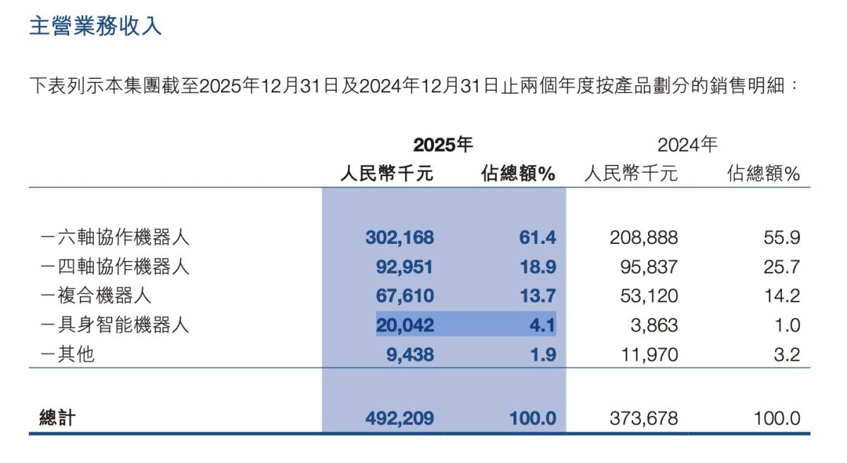 去年,越疆科技来自具身智能机器人的销售收入同比增长418.8%。但该业务收入目前仅占总营收的4.1%。