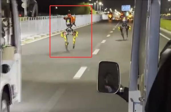 从关海涛转发的视频显示,机器人“闪电”上身主体颜色为橙色,机身前后分别印着HONOR、荣耀标识,在灵活转过一个大弯后,闪电立刻开始全力提速,几乎要超越先于它出发的选手。