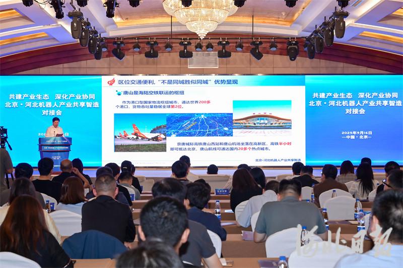 9月16日,“北京·河北机器人产业共享智造对接会”在北京举行。以“共建产业生态、深化产业协同”为主题,会议旨在推动京津冀机器人产业资源共享、能力协同与创新融合,助力区域制造业高质量发展。来自北京市、河北省及唐山市的高校科研机构专家、企业代表等150余人参会,现场共有11个项目达成初步合作意向。