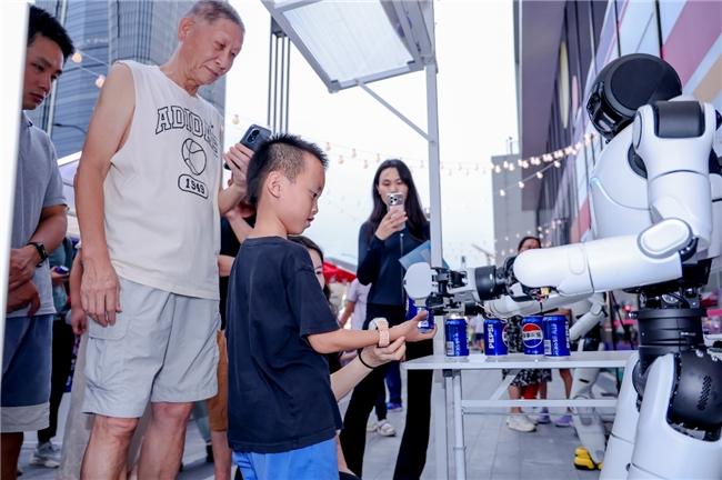 在互动体验区,灵犀X2化身智能服务大使,为游客递送可乐并进行自然流畅的对话互动。而智元D1 Ultra的登场更是将现场气氛推向高潮,智元具身智能机器人展示了卓越的任务执行能力和环境适应性,引发阵阵赞叹。