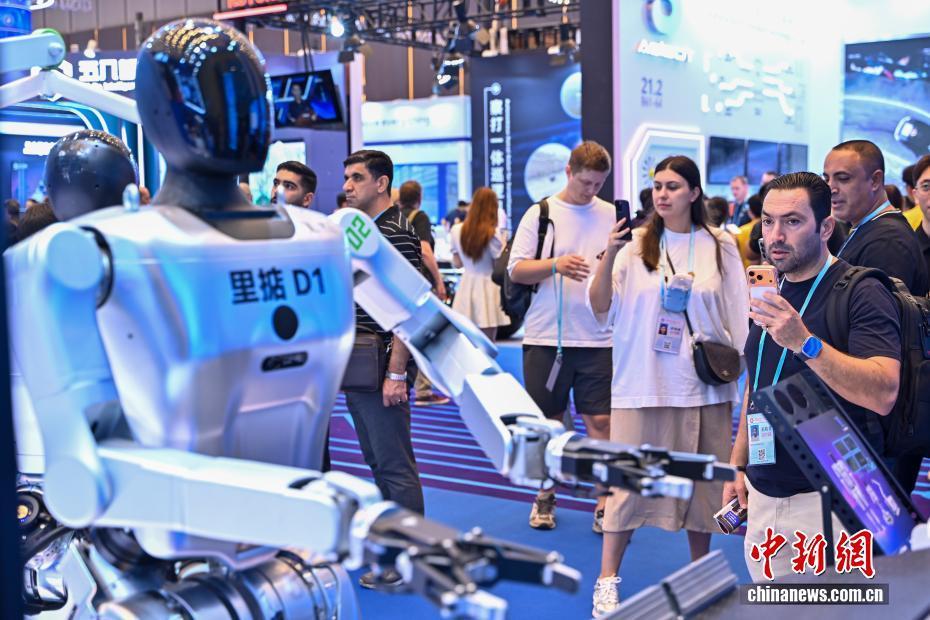 10月15日,第138届中国进出口商品交易会(广交会)在广州开幕。本届广交会第一期以“先进制造”为主题,设立服务机器人专区,聚焦服务机器人前沿,集中展示中国服务机器人最新发展成果。图为一款人形机器人吸引采购商。中新社记者 陈骥旻 摄