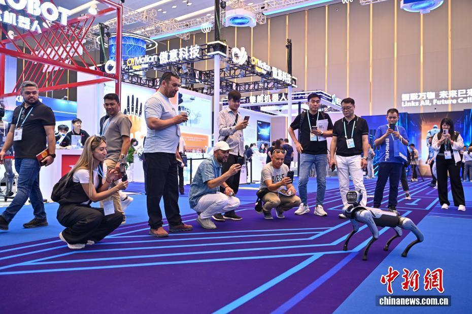 10月15日,第138届中国进出口商品交易会(广交会)在广州开幕。本届广交会第一期以“先进制造”为主题,设立服务机器人专区,聚焦服务机器人前沿,集中展示中国服务机器人最新发展成果。图为一款四足机器人吸引采购商。中新社记者 陈骥旻 摄