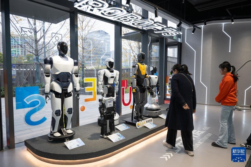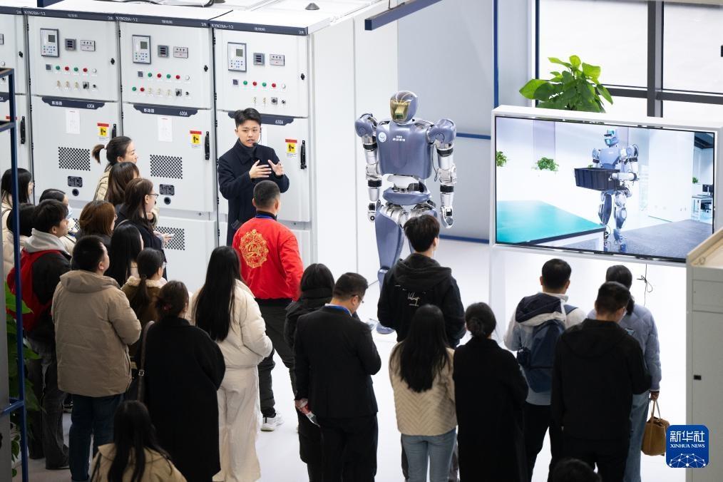 12月4日,参观者在湖北人形机器人创新中心参观。