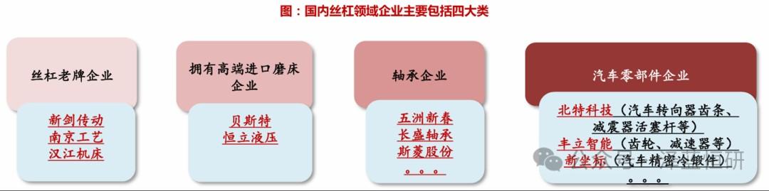 具体来看,对于目前国内丝杠领域的玩家,主要可以分为以下四大类: