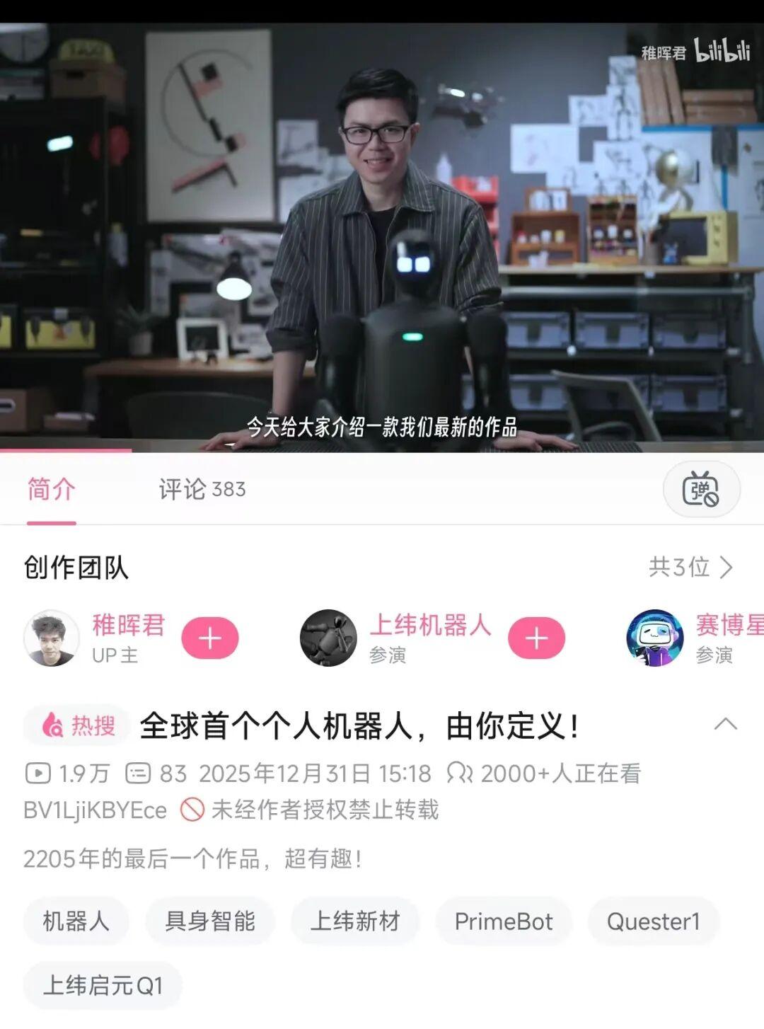 就在刚刚,智元机器人联合创始人彭志辉在B站发布他在2025年的最后一个作品,介绍了新产品——全球首个个人机器人,即小尺寸全身力控人形机器人产品:启元Q1。
