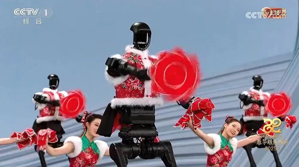 其实,这并非人形机器人首次在舞台上掀起广泛关注。早在2025年央视春晚的创意节目《秧BOT》中,杭州宇树科技研发的人形机器人便以东北秧歌为表现形式,与人类舞者共同完成整场演出。该节目由张艺谋策划与指导,多台机器人身着红色花袄、手持手绢,在舞台上完成精准走位、转手绢和队形变化等传统动作,展示了技术与传统文化的深度融合。