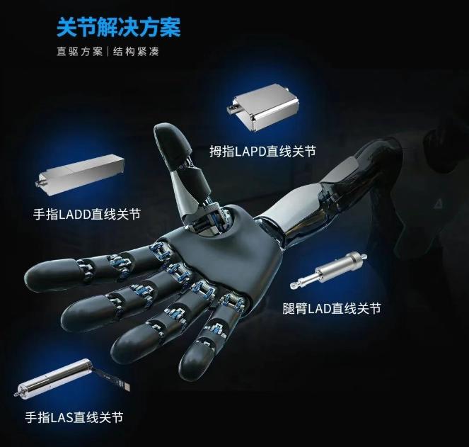 手指直线关节:尺寸小、推力高,支持高精度直线运动,具备灵活定制的推力与行程,广泛应用于高精密运动操作场景。