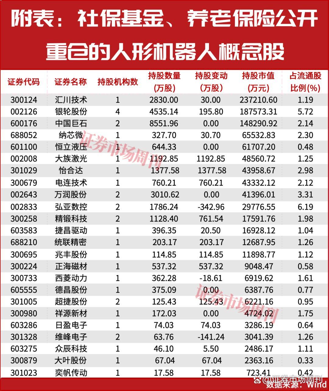 除了一级市场的直接投资,二级市场的机构持仓也能看出“国家队”对人形机器人概念的青睐。除了长期稳定持仓的汇金公司、证金公司,24只人形机器人、丝杠、灵巧手、减速器等细分概念股的前十大流通股东中出现了社保基金/养老保险的身影,10只为2025年三季度末新进重仓,6只在二季度已持仓的前提下被继续增持(见附表)。