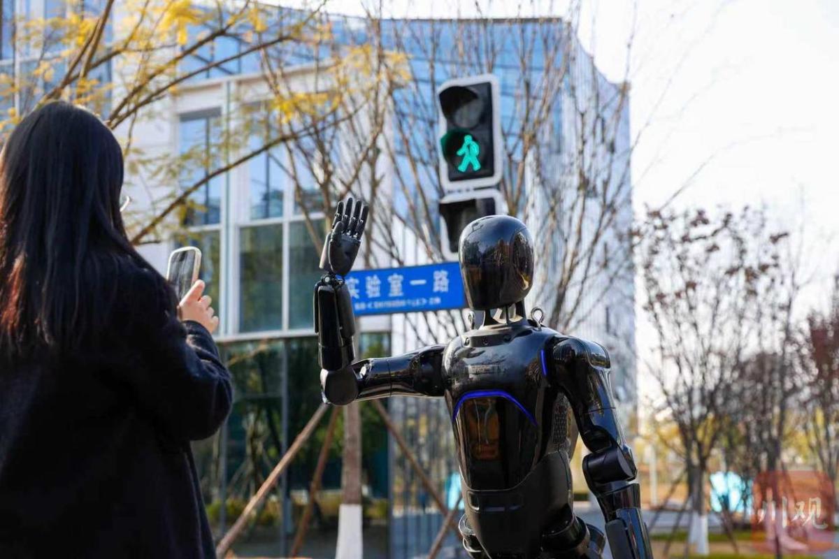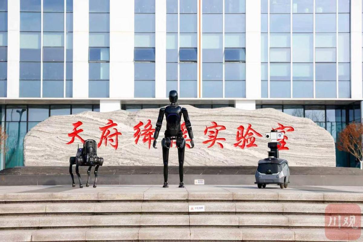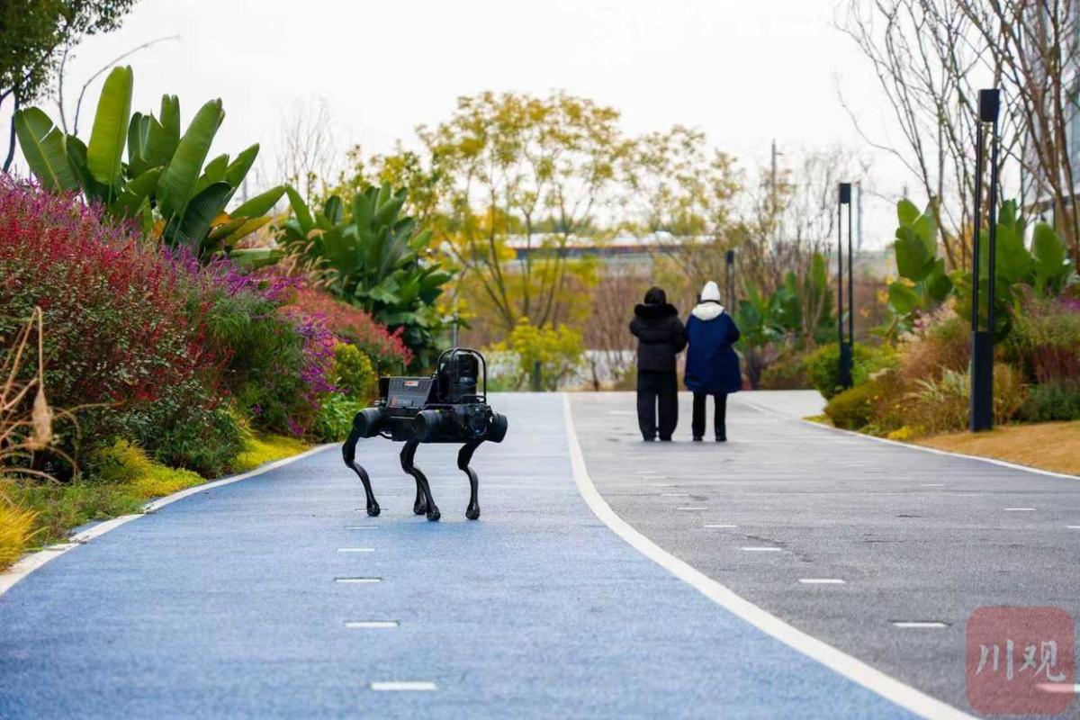 1月20日,成都未来科技城的训练场内,人形机器人沿人行道缓步前行,遇红灯驻足、见行人避让挥手;机器狗灵巧跃过山坡台阶,精准识别草地上的烟头并同步至后台系统;轮式无人车平稳巡航主干道,自主绕行障碍物并监测施工隐患——这支“联合巡检队”正以“一脑统管”模式。