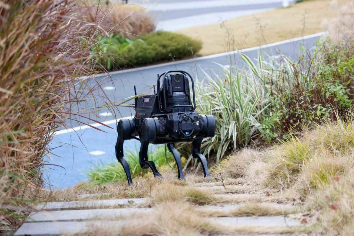 机器狗在不规则草地上开展巡检工作