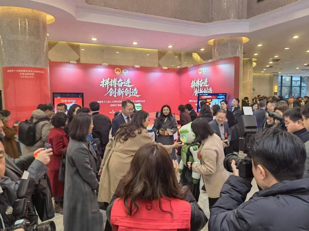 它们是“天行者1号”和“天行者2号”。据公司合作发展中心总监程卿苗介绍,1号是基础版,主要用于测试稳定性和基础运动能力。2号则搭载多模态感知系统,融合激光雷达与3D视觉,能实现空间定位与环境建模,主要面向智能制造、科研教学与康养服务三大场景。 “每一个动作的打磨,都离不开海量数据的反复调试。”程卿苗表示,“升级后的机器人,每个关节的状态都清晰可见。”目前,“天行者2号”已推出多个版本,适应不同需求,并成为西南地区首个上线京东平台的人形机器人,相关机器人订单量持续增加。 不远处,记者看到了刚结束外勤的“爱湫”,它胸前还挂着嘉宾证。这款曾在跨年夜亮相的情感交互机器人,是全球首款同类型产品。其面部采用3D超短焦投影,表情生动自然,交互更具亲和力。