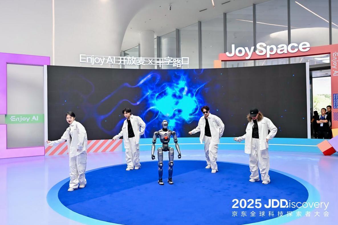 9月25日,以“Enjoy Ai”为主题的JDDiscovery—2025京东全球科技探索者大会在北京隆重开幕。大会伊始,一场别开生面的AI Show迅速点燃现场气氛。多台人形机器人在动感音乐的节奏中,以整齐划一的动作和精准流畅的舞步,为观众呈现了一场科技与艺术交融的视觉盛宴,生动诠释了人工智能正以更亲切、更生动的姿态走进人类日常生活。