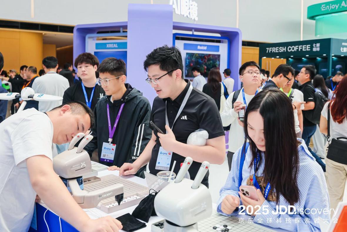 在大会的JoyInside展区,京东集中展示了其在机器人领域的生态布局。元萝卜AI下棋机器人、众擎PM01人形机器人、魔法原子MagicDog Pro、物灵Luka Hero双语学习机器人、loona机器狗等众多生态伙伴的创新产品齐聚一堂,从提供温馨陪伴的家庭陪护机器人,到带来欢乐时光的娱乐互动机器人,从助力学习的教育机器人到展现激情的运动竞技机器人,各式各样的智能设备生动展现了机器人技术日益丰富的应用场景,勾勒出一幅未来智能生活的美好画卷。